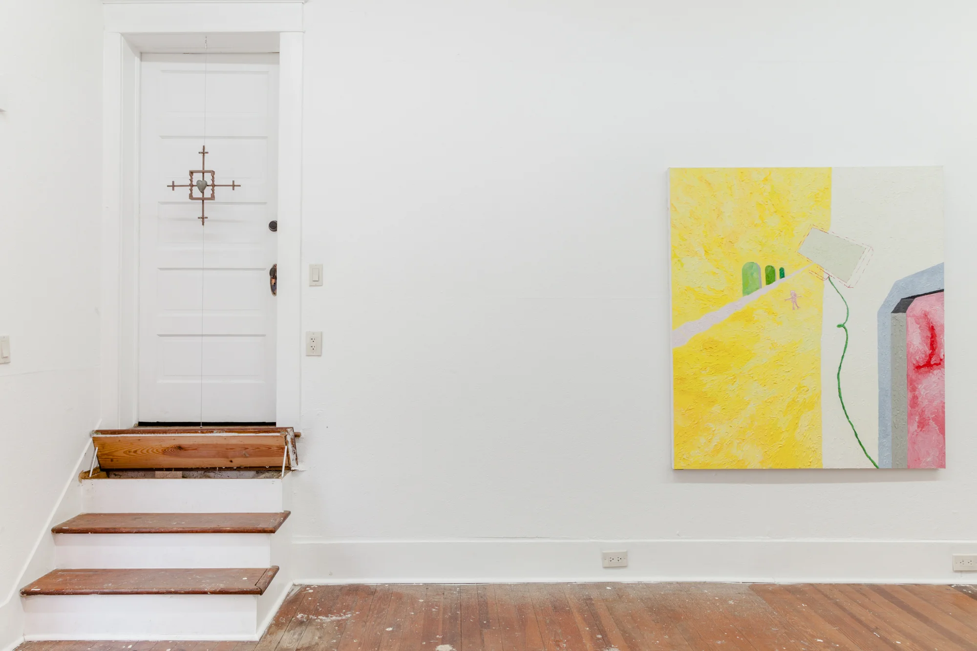 Harvey presents sculptures made from foraged wood and clay. These raw materials are skillfully crafted into unusual narratives that oscillate between formal abstraction and philosophical rumination, a style The New York Times recently distinguished as, "tramp art à la Brancusi." Sullivan, on the other hand, presents thickly applied oil paintings on canvas that depict atmospheric scenes of architectural structures, cartoonish animals, and blank computer screens.